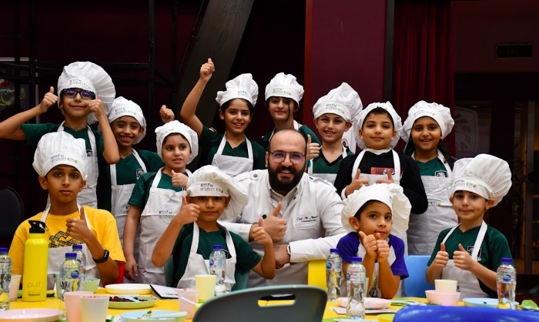 The Healthy Cooking Club team, held by Mrs Aya Khayyat and her assistant Mr Carlos Dos Santos Pires and the Nestle organisation Commercial Development Executive, Reem Lawand and her team, collaborated to arrange a Global International Chef Day event for students aged from 8 to 11. The event was held in the school hall from 3 to 5:30 pm.